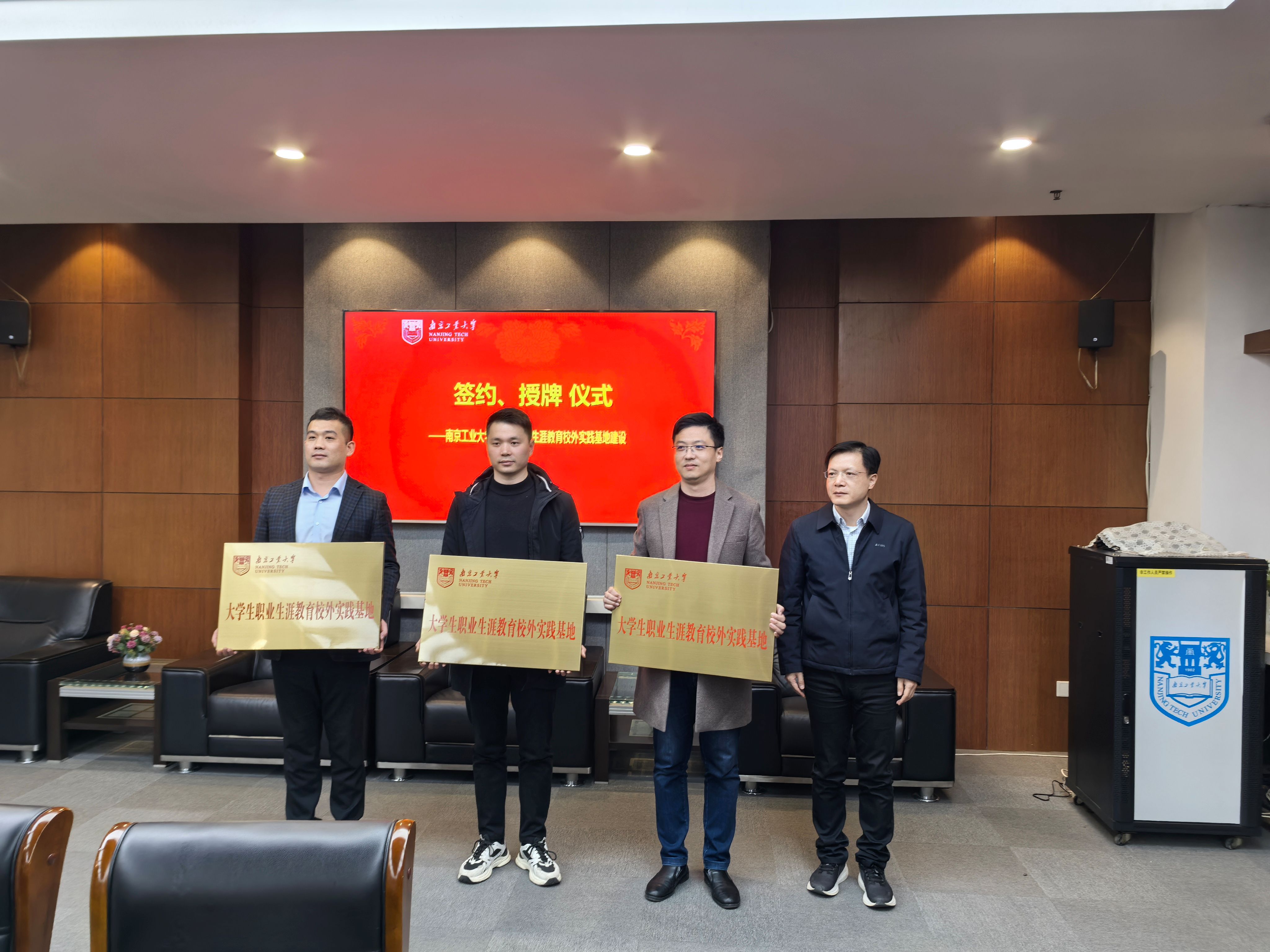 为加强校友企业与母校之间的联系,促进产教融合、合作共赢,张长江副院长、李宏贵主任还分别与江苏拓博服饰有限公司总经理姚远、安徽仰高网络科技有限责任公司副总经理朱正宇、南京一泉大健康产业发展有限公司总经理王宜平、江苏运联信息股份有限公司技术总监胡金龙、江苏金楯新材料科技有限公司总经理罗发林、港翼慧燃(南京)低空智能科技有限公司总经理曹和平等MBA/MEM/MPAcc校友签订了南京工业大学大学生职业生涯教育校外实践基地建设协议和研究生培养实践基地协议并为校友企业授牌。