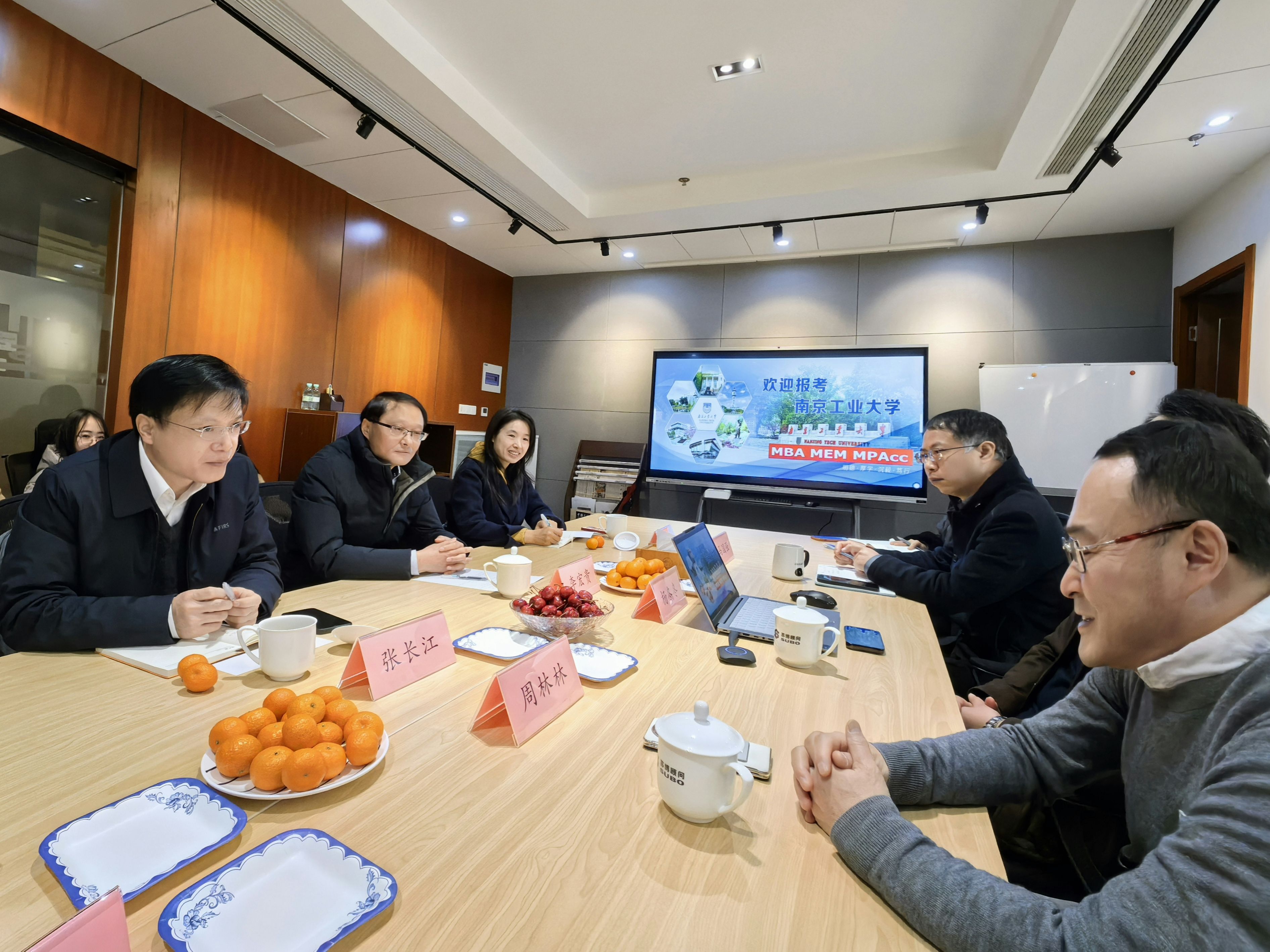 张长江副院长重点介绍了南京工业大学的发展现状及经济与管理学院在学科建设、人才培养、产学研合作等方面的创新实践。李宏贵主任与公司就未来产教合作机制进行了探讨,刘新艳主任表达了与苏博顾问在案例开发领域深化合作的意愿,沈晖老师现场解读了MBA/MEM/MPAcc研究生项目特色,并就企业员工关心的热点问题进行了专业解答。